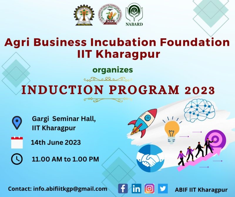 The ABIF IIT Kharagpur organized the Induction Program 2023 on 14th June 2023 to mark the beginning of the entrepreneurial journey of newly onboarded incubatees working in agriculture, rural development and allied sectors. 58 incubatees participated in hybrid mode out of which seven participated in showcasing their products during the event.