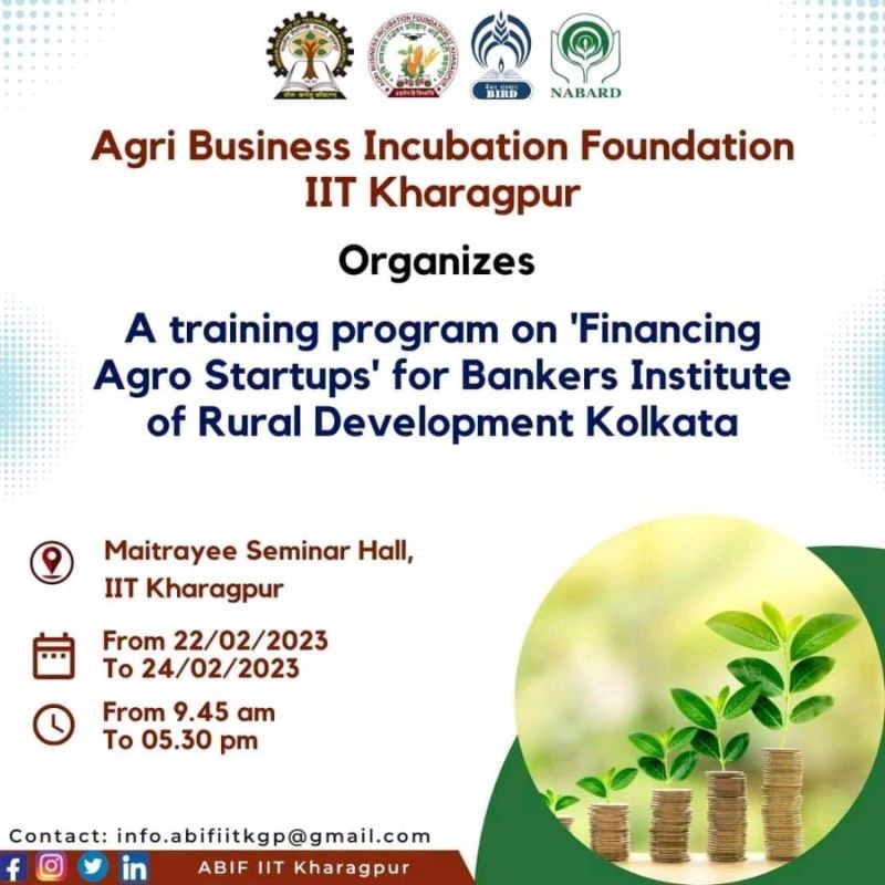 The foundation has organized a training program for Bankers Institute of Rural Development (BIRD) Kolkata on ‘Financing Agro Start-ups’ from 22nd to 24th February 2023. Total number of participants were 25 and they were from various Regional Rural Banks, Gramin Banks, State Cooperative Banks such as Jharkhand State Cooperative Bank, Telangana State Cooperative Bank, Andhra Pradesh State Cooperative Bank, Dakhin Bihar Gramin Bank and Odisha Gramya Bank