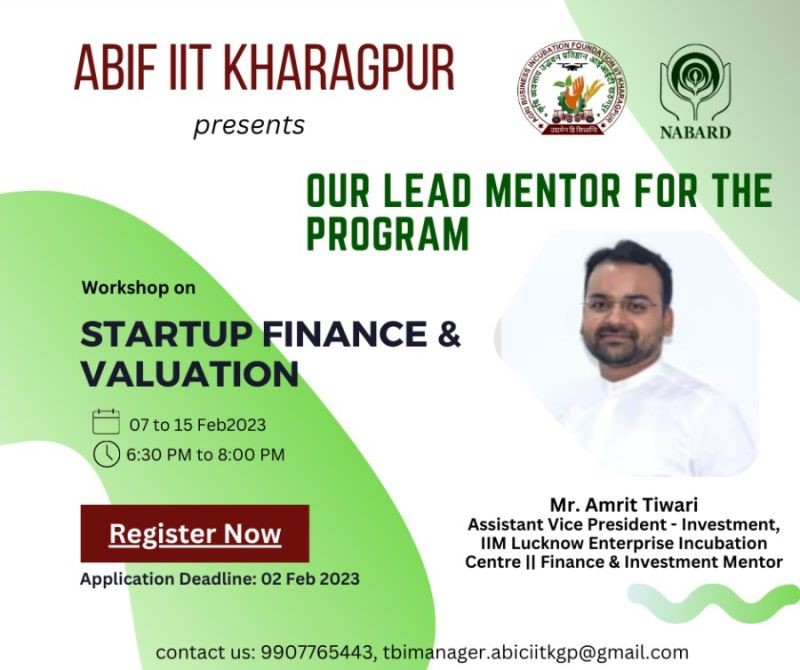A workshop on "Startup Finance and Valuation" via online mode was successfully organized from 7th February 2023 onwards. This workshop dealt with all the basic and essential aspects of startup finance and valuation, tutored by experienced mentors in a step-by-step manner. The target audience consisted of our incubatees, entrepreneurs, startup founders, wantrepreneurs, incubation managers or any interested individual. The sessions included Startup Finance, Financial Planning and its Need, Understanding Three Statement Model, how to manage Startup Finance and Unit Economics, Discussion on “How to Approach the Financers” and Readiness Assessment, Types of Investment Instruments and Startup Valuation (Theory), Startup Valuation (Practical), Deal Negotiation and Structuring of Deal/Cap Table. The sessions were majorly led by Mr. Amrit Tiwari, AVP-investment, IIM Lucknow enterprise incubator.